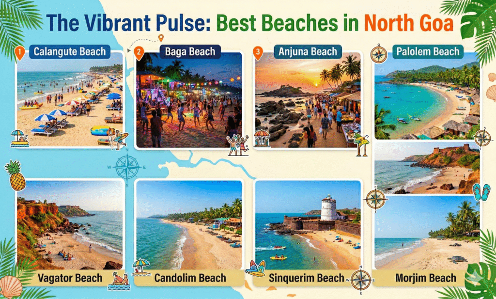 North Goa is best for nightlife, parties, and crowded beaches, while South Goa is ideal for peaceful vacations, clean beaches, and relaxation. Your choice depends on your travel preference.